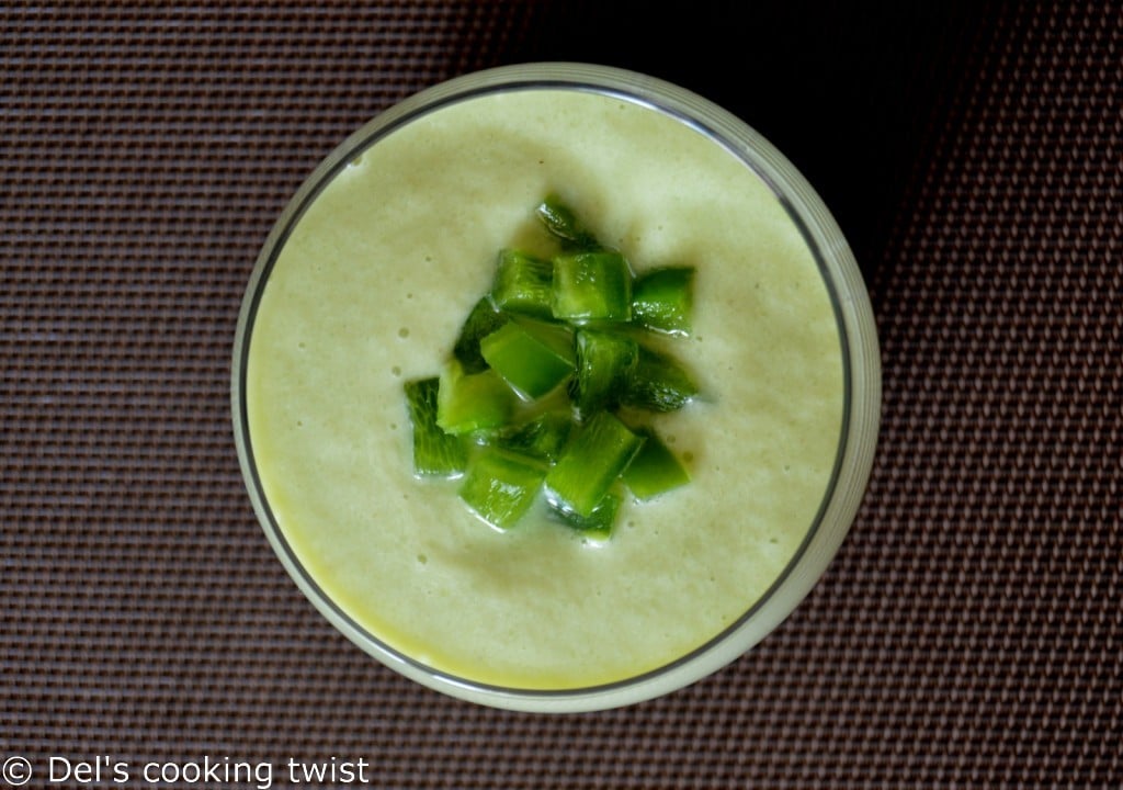 In the heat of summer, nothing is as refreshing and hydrating as a gazpacho. Originating from Spain, gazpacho is traditionally made with ripe tomatoes blended with other raw vegetables and a subtle seasoning that brings all its flavors to the soup. This green gazpacho is a great spin on the classic recipe, featuring cucumber and avocado as main ingredients in lieu of sun-drenched tomatoes that usually bring the red color of this chilled soup.