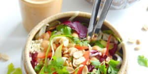 That being said, you may want to go easy on the ginger peanut butter dressing if you are watching your calories intake closely or try to avoid sugar as much as possible. Peanut butter is indeed high in calories, but you will be happy to know that it’s also full of healthy fat (the one responsible for the “good” cholesterol). So keep everything in moderation and you will be just fine!