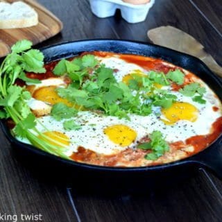 I’m sharing today a traditional dish from the Middle East that I make every so often. It’s quick, easy, family-friendly, and everyone loves it for breakfast, lunch or dinner! The combo eggs-tomato also reminds me of a pretty similar version my mom used to make when I was a kid, using very large ripe tomatoes from the garden.