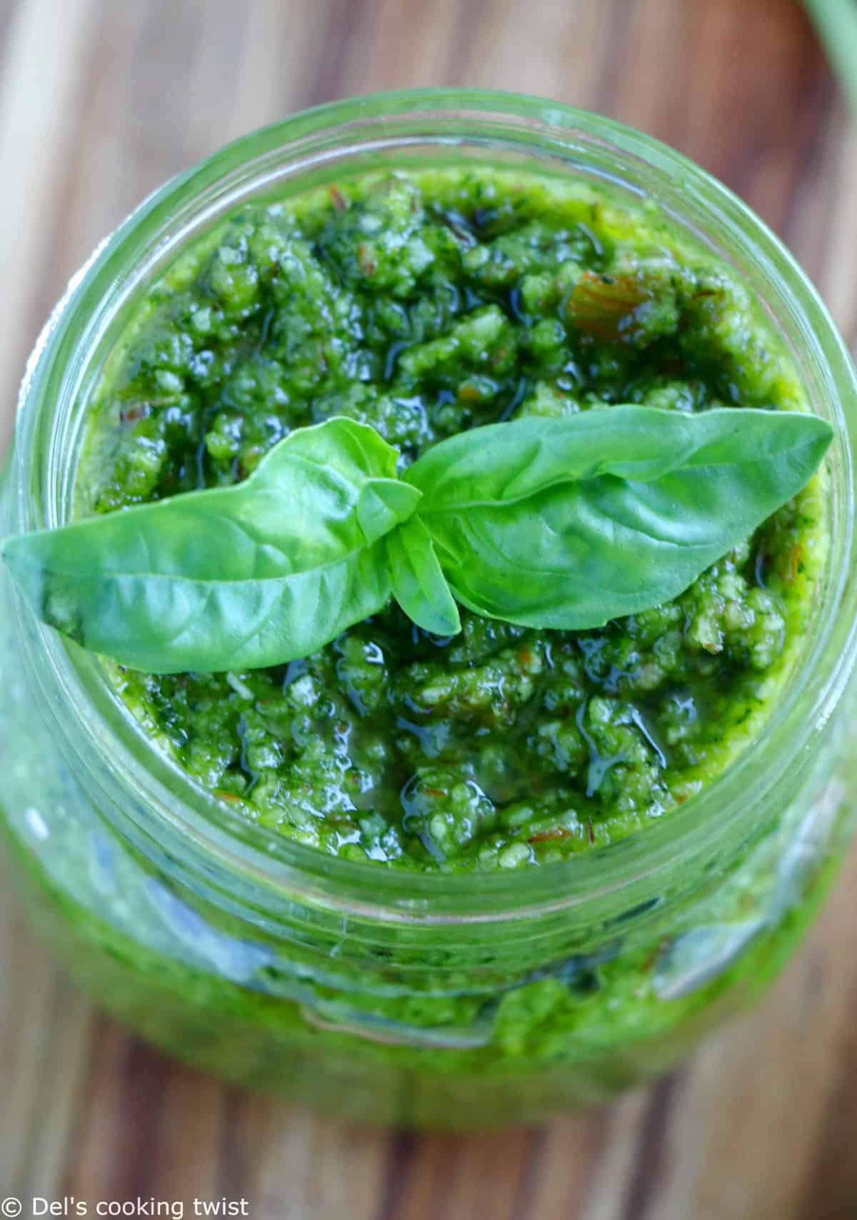 Summer is here and you will be happy to know that there are many different ways to use pesto in your recipes, not only pasta. You can simply prepare some bruschettas with basil pesto and diced fresh tomatoes on top, with or without cheese (mozzarella, goat cheese…). You can also spread some basil pesto on the bottom of your pizza, as for the Broccoli, feta, and red onion pizza  that you can find on the blog already. Others also use basil pesto as a dressing  instead of vinaigrette for some salads.