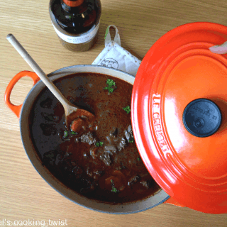 So I figured I should actually share with you my Boeuf Bourguignon recipe. I found this recipe in Francoise Bernard’s cookbook, a masterpiece when it comes to French cuisine. This book has been following me everywhere for almost 15 years now and I worked my way through the recipes hundred of times! So I guarantee you can’t go wrong with this boeuf bourguignon.
