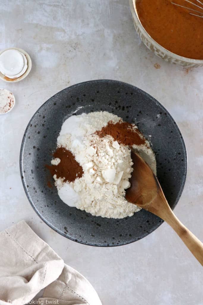 - In a medium bowl, whisk together flour, baking powder, baking soda, cinnamon, allspice, and salt.