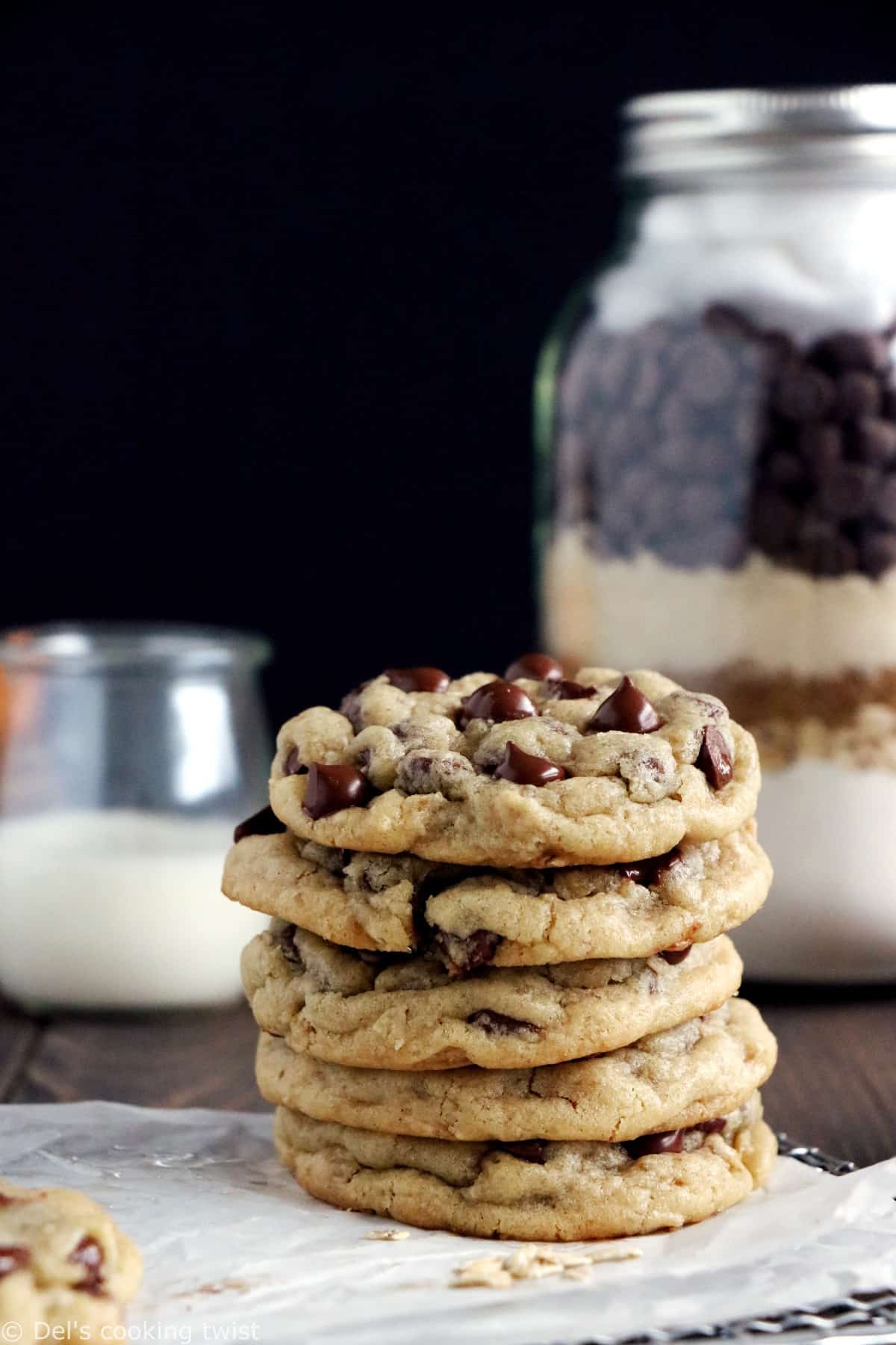 Let’s make chocolate chip cookie mix in a jar today! This fun, entertaining and beautiful food DIY project makes an unexpensive and thoughtful gift for your family or friends. I’ve always been into homemade gifts (homemade chocolate granola, madeleines, crackers, you name it) and I never miss an occasion to prepare them. Whether it’s for Thanksgiving, Christmas, Mother’s Day or any other occasion, it is sure to make the recipient happy.