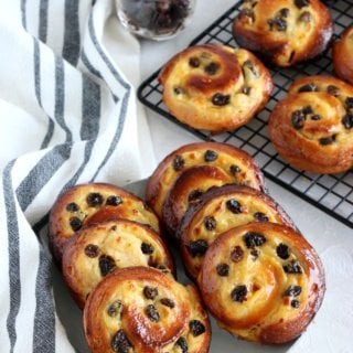 Wake up to the so-called “pains aux raisins”! These easy raisin brioches filled with vanilla pastry cream are a reminiscence of my childhood in France.