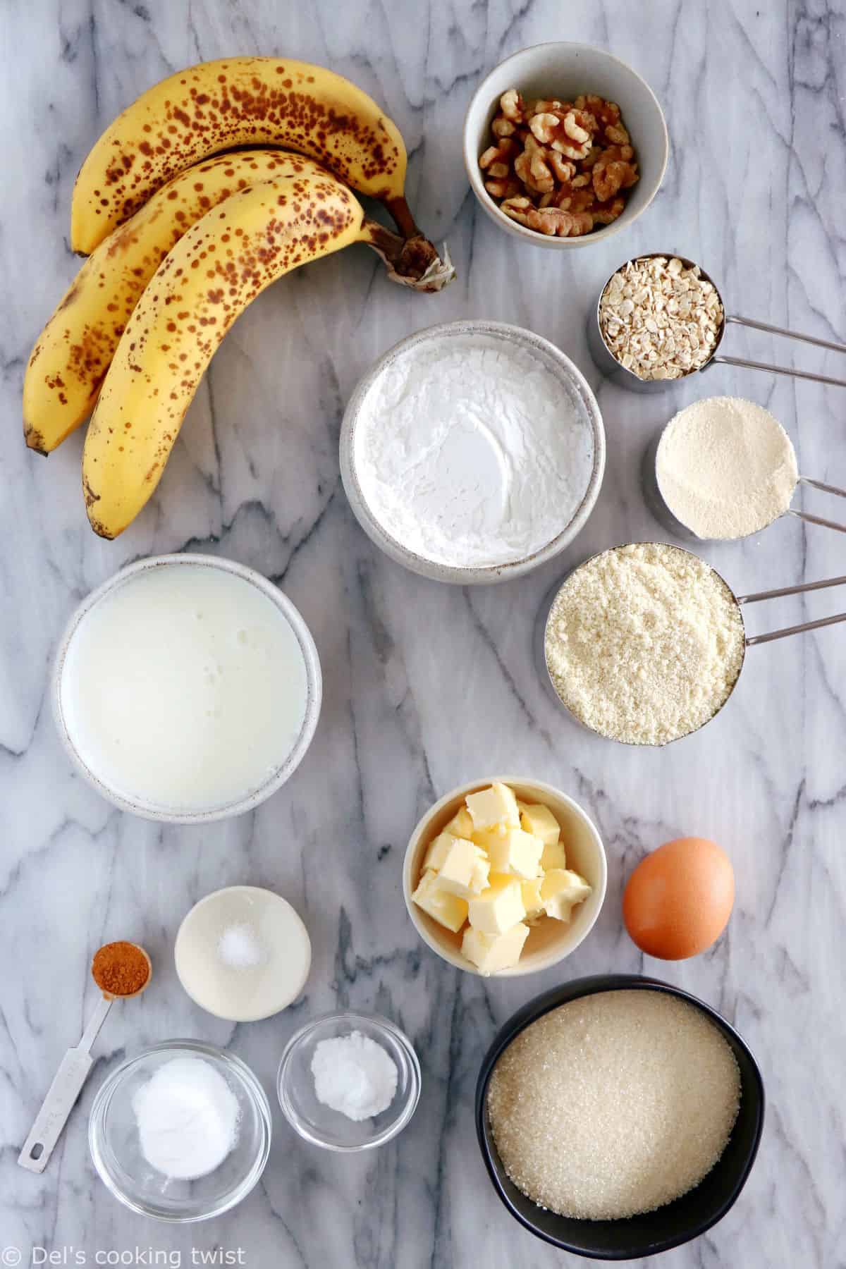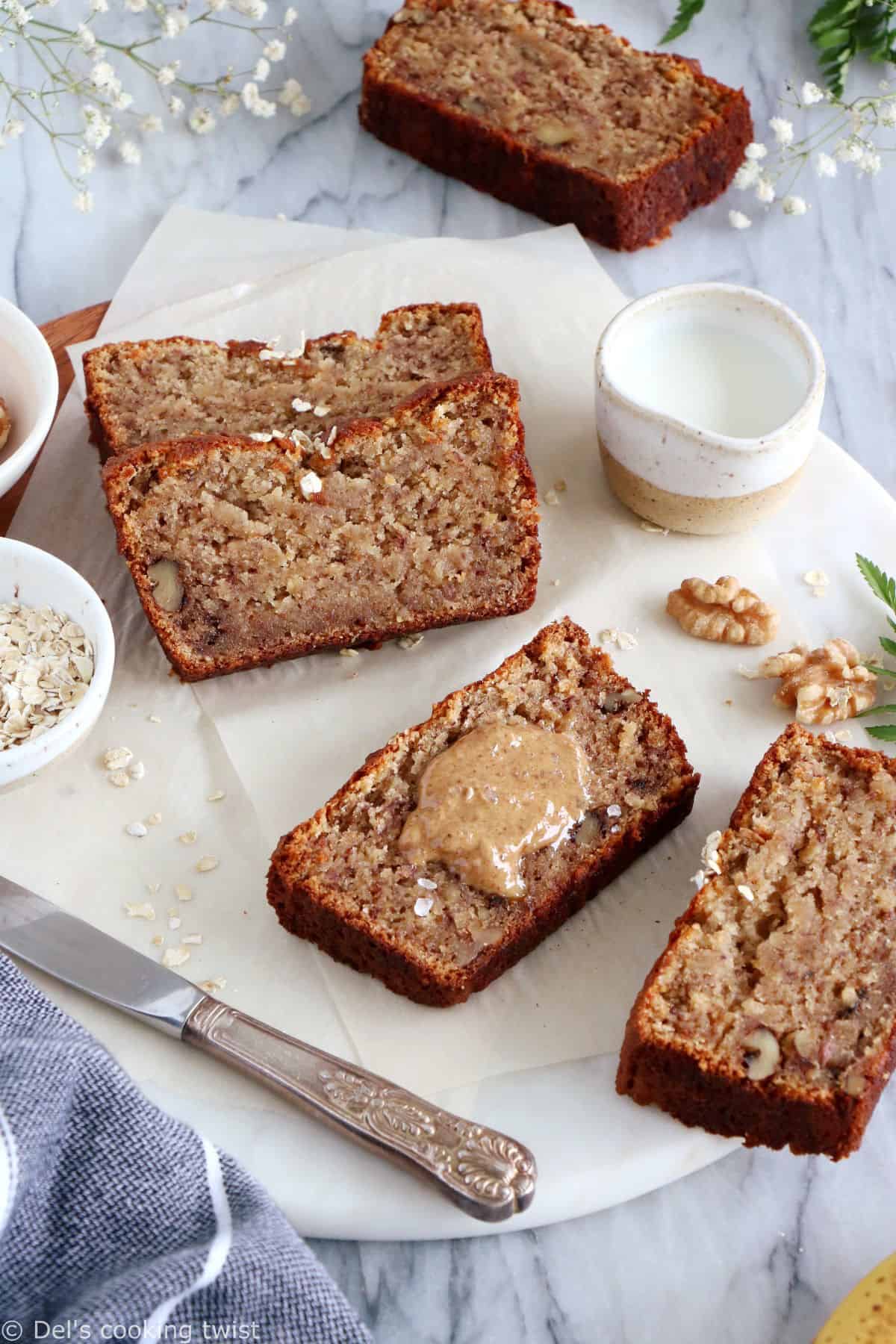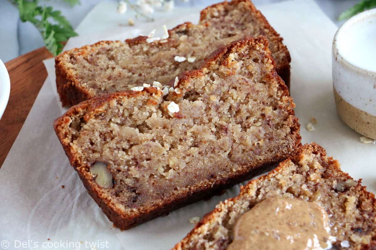 Je sais que vous êtes très nombreux à adorer mon banana bread ultra moelleux, une recette que vous faîtes et refaîtes très souvent, avec toujours le même succès. Parmi les presque 700 recettes du site, cette recette est en effet l’une de mes plus grandes fiertés. J’en ai d’ailleurs réalisé une version vegan il y a quelques temps, et comme je souhaite ne laisser personne en reste, me voici de retour avec une version cette fois-ci sans gluten.