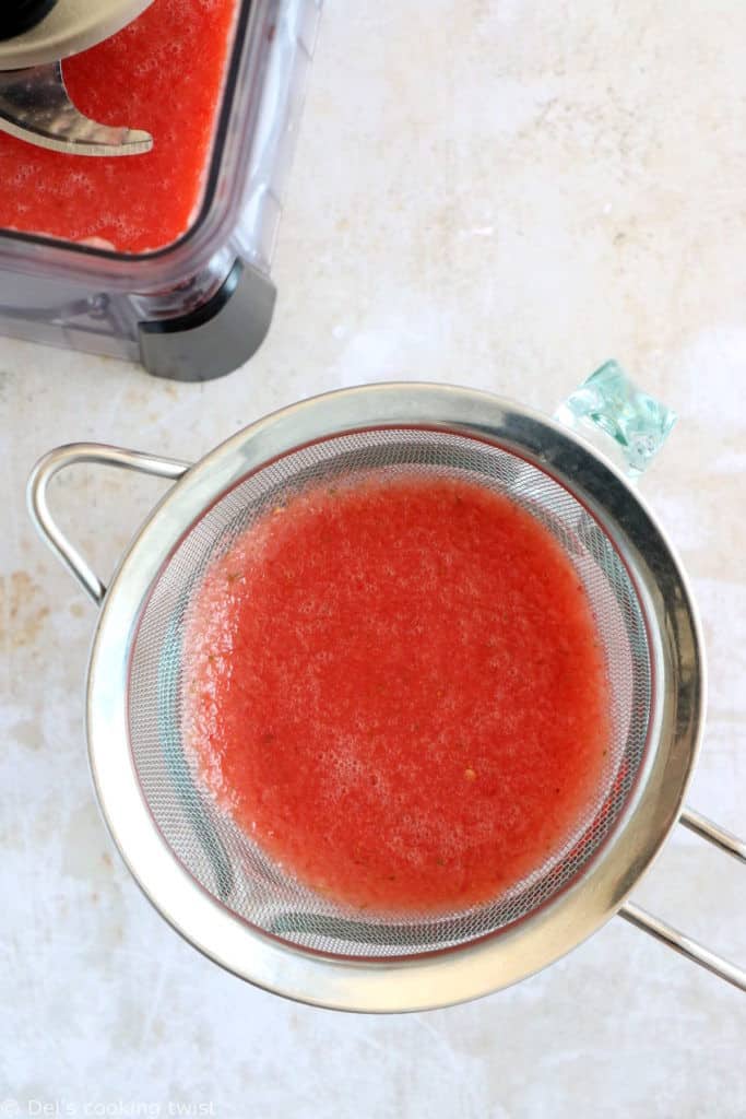 - Passer le mélange dans une passoire afin de se débarrasser de la pulpe et ne garder que le jus.