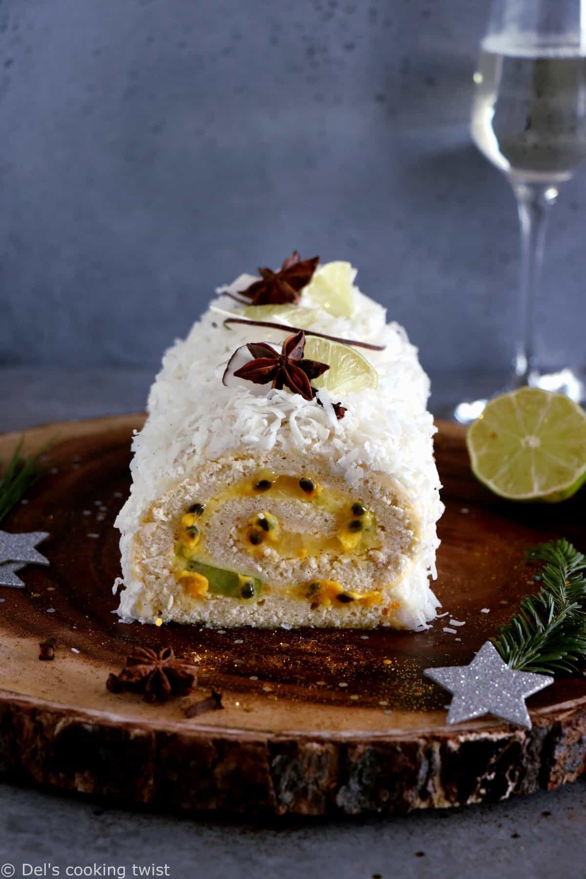 Bûche exotique mangue-coco aux fruits de la passion (+ vidéo)