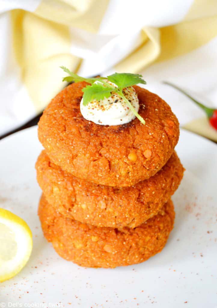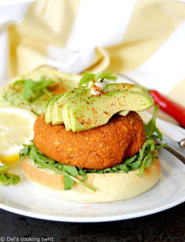 Avant de réaliser cette recette, j’avais une idée relativement claire de ce que je recherchais : un burger épais et généreux au bon goût de patates douces, avec des lentilles corail (j’adore ça!) et une pointe d’épices pour réhausser l’ensemble. Essayant de répertorier les recettes existantes, je me suis inspirée de plusieurs pour finalement créer la mienne afin de retrouver l’exactitude en goût et en texture que je recherchais… et que j’ai trouvé avec succès. J’en suis très fière !