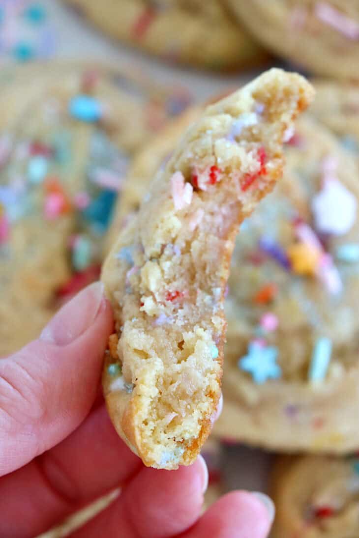 Conservation. Comme tous les cookies, ces cookies confettis sont délicieux encore tièdes, tout juste sortis du four, mais ils seront également très bons le lendemain et jusqu’à deux jours plus tard. Pour cela, il suffit de les garder à température ambiante dans une boîte hermétique (ou sous cloche). Pour vous assurer qu’ils restent bien moelleux au centre, même plusieurs jours plus tard, pensez à ne pas trop les cuire.