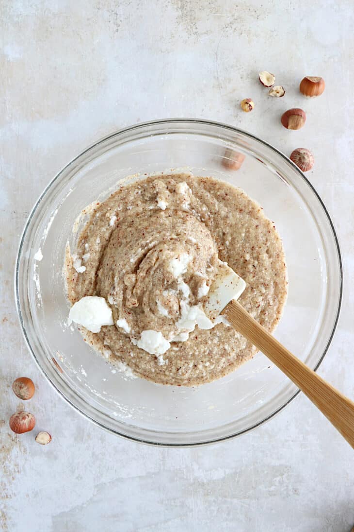 Deux options s’offrent à vous. Vous pouvez utiliser de la poudre de noisettes ou bien mixer vous-même des noisettes entières et légèrement grillées au robot. Quelle que soit la méthode, vous remarquerez que la poudre obtenue a un peu de texture (par opposition à la farine de blé parfaitement lisse et douce). Personnellement, j’opte toujours pour la poudre de noisettes et en suis très satisfaite à chaque fois.