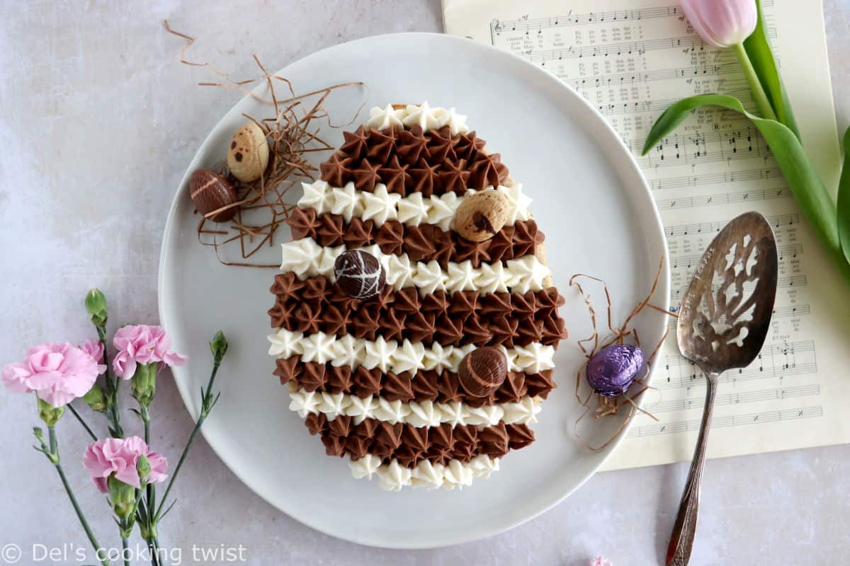 Ce gâteau oeuf de Pâques noisettes et chocolat, c’est un dessert très gourmand qui fera sensation sur votre table de Pâques.