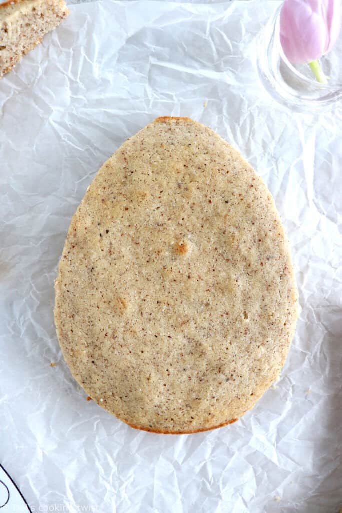 Notez que pour sa version oeuf de Pâques, j’ai utilisé les chutes de gâteau pour réaliser deux jolies lunes (cf. photos). Rien ne se perd !