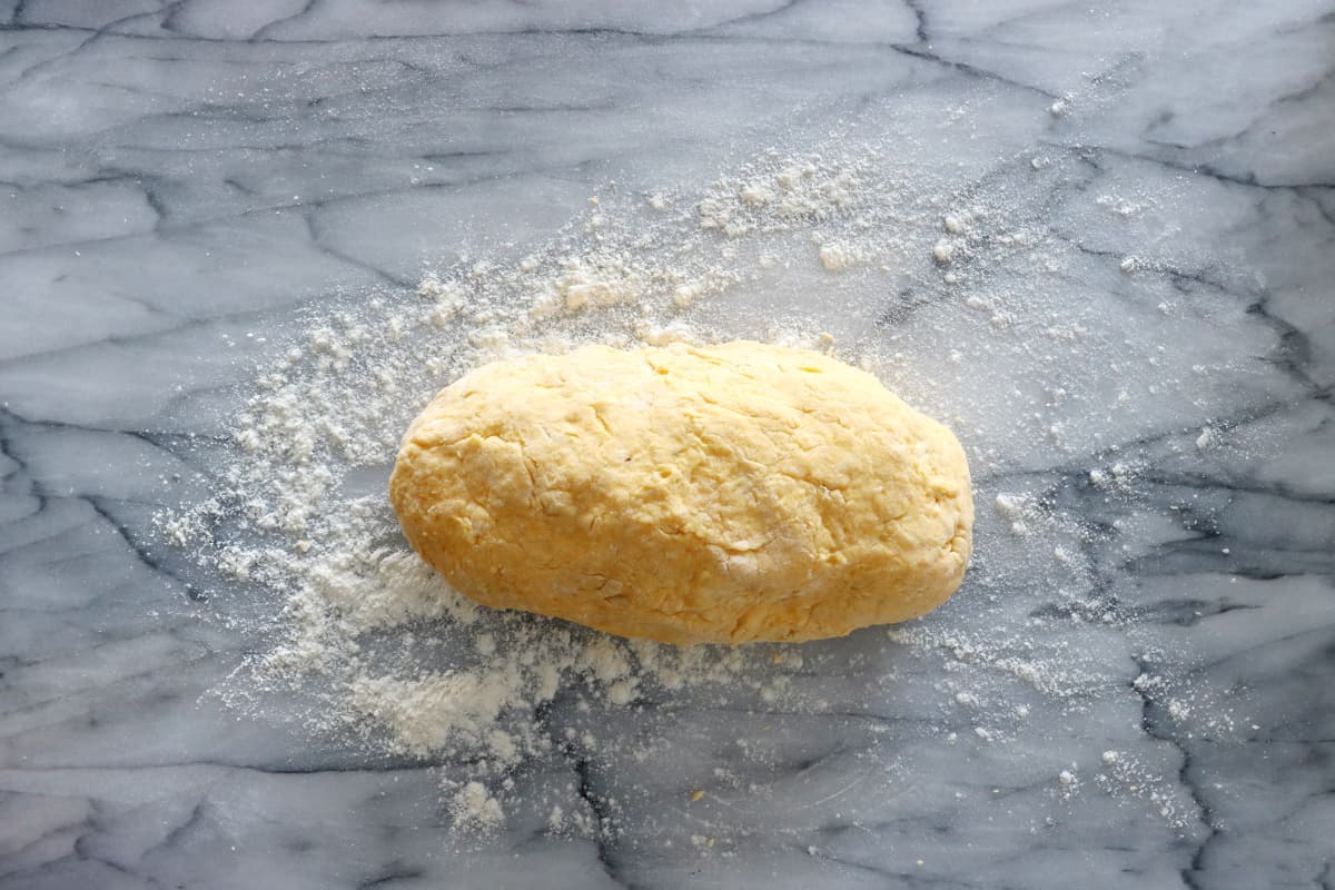 - Transférer la pâte sur une surface de travail propre et farinée.