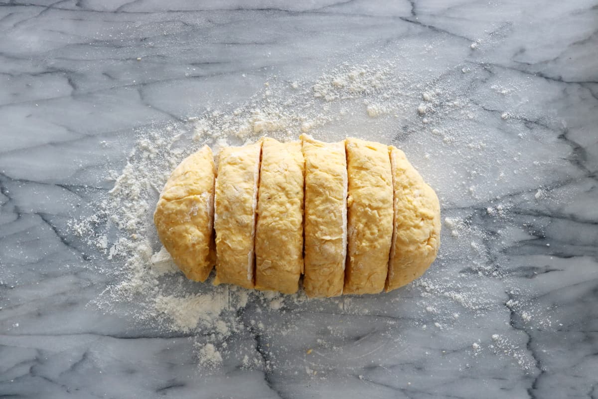 - Découper celui-ci en petits morceaux, formant ainsi les gnocchis.