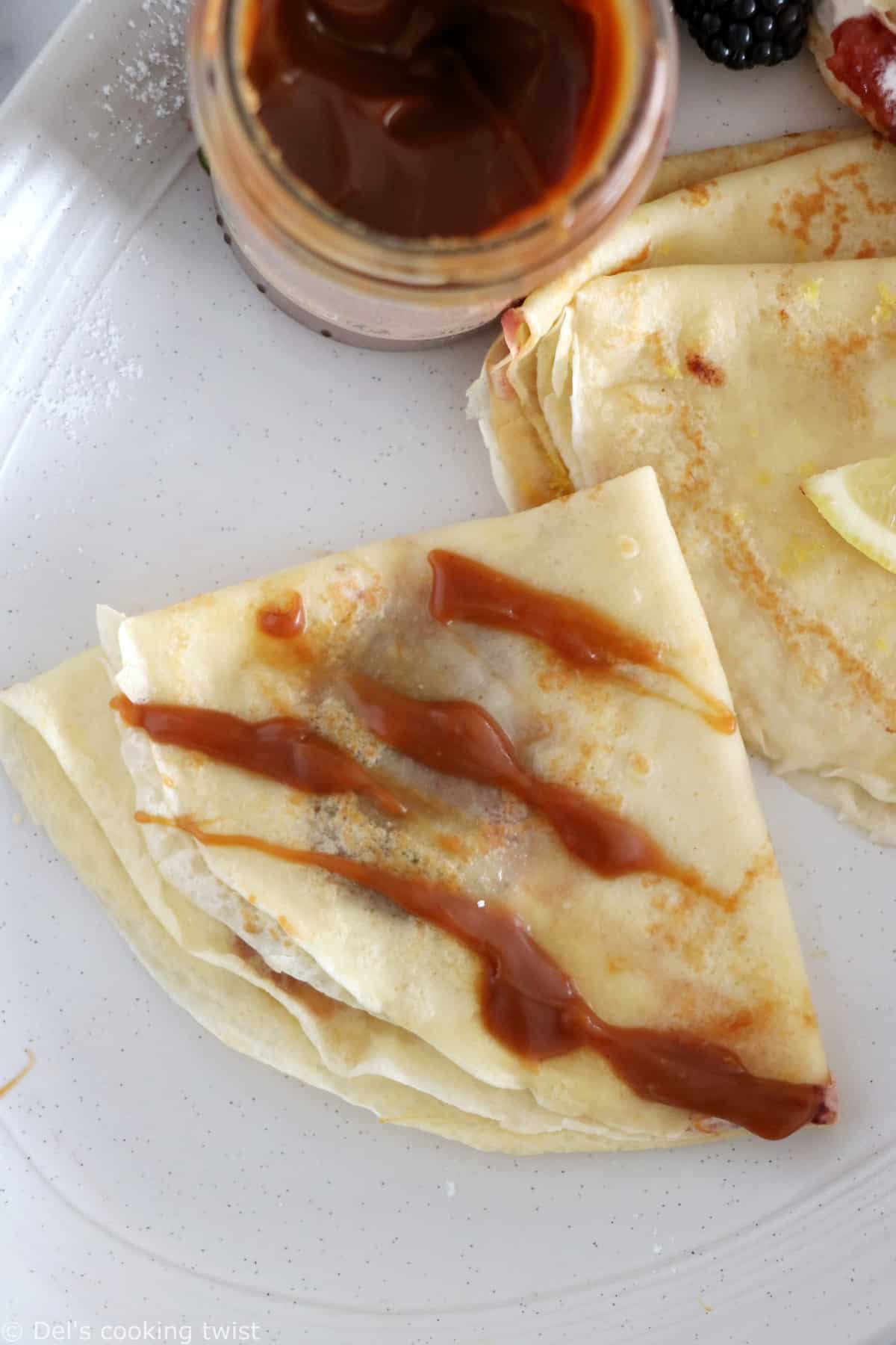 Le caramel au beurre salé, c’est la gourmandise ultime pour des crêpes qui restent toute simples à garnir ! Petits et grands adorent.