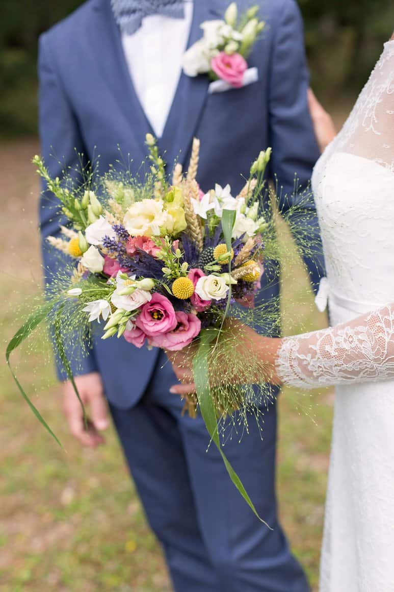 Puisque nous nous sommes mariés une première fois civilement en Suède, nous avons choisi de nous marier une nouvelle fois en France, le jour de la fête suédoise traditionnelle de Midsummer. Le thème était tout trouvé : des fleurs des champs, pour le bouquet, sur les tables et même dans la boutonnière de David.