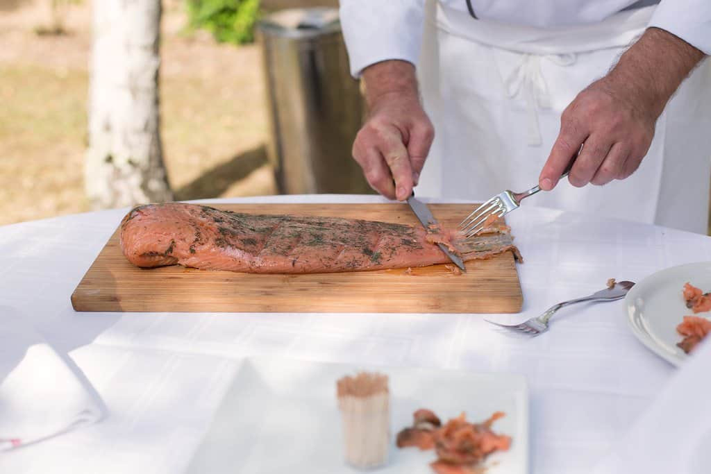 Au menu lors du cocktail, nous étions là encore partagés entre tradition française et suédoise, avec un stand français de foie gras avec des tartines, tandis que l’autre, suédois, était consacré au fameux saumon gravlax servi avec sa sauce à la moutarde et du pain de seigle dur très typique en Suède, le “knäckebröd”.