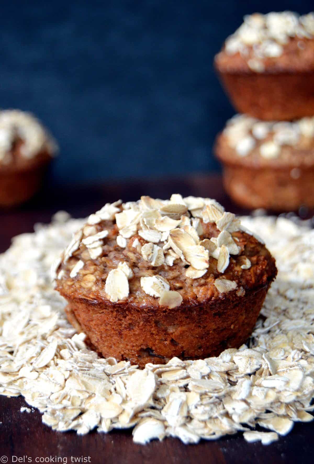 Beaucoup plus sains et riches sur le plan nutritionnel que leur version classique, ces muffins peuvent également être réalisés sans lactose et sans gluten. Pour ce faire, assurez-vous d’utiliser du lait sans lactose ou du lait végétal (n’importe quel lait fera l’affaire ; pour ma part j’aime le lait d’amande) ainsi que des flocons d’avoine garantis sans gluten. C’est tout simple !