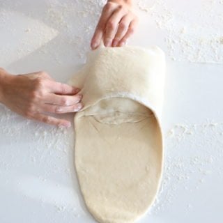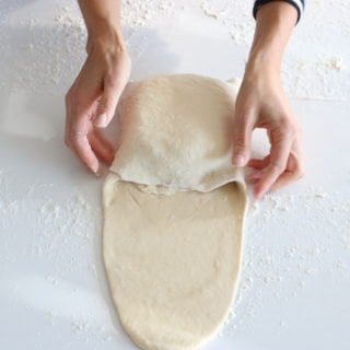 5. Pour les autres tours: faire ¼ de tour, puis abaisser à nouveau la pâte selon le même procédé, en pliant en trois de nouveau. Faire 6 tour au total. Mon conseil : commencer par 3 tours, filmer la pâte et mettre au frais. Ressortir quelques heures plus tard ou idéalement le lendemain, et réaliser les 3 tours restants.