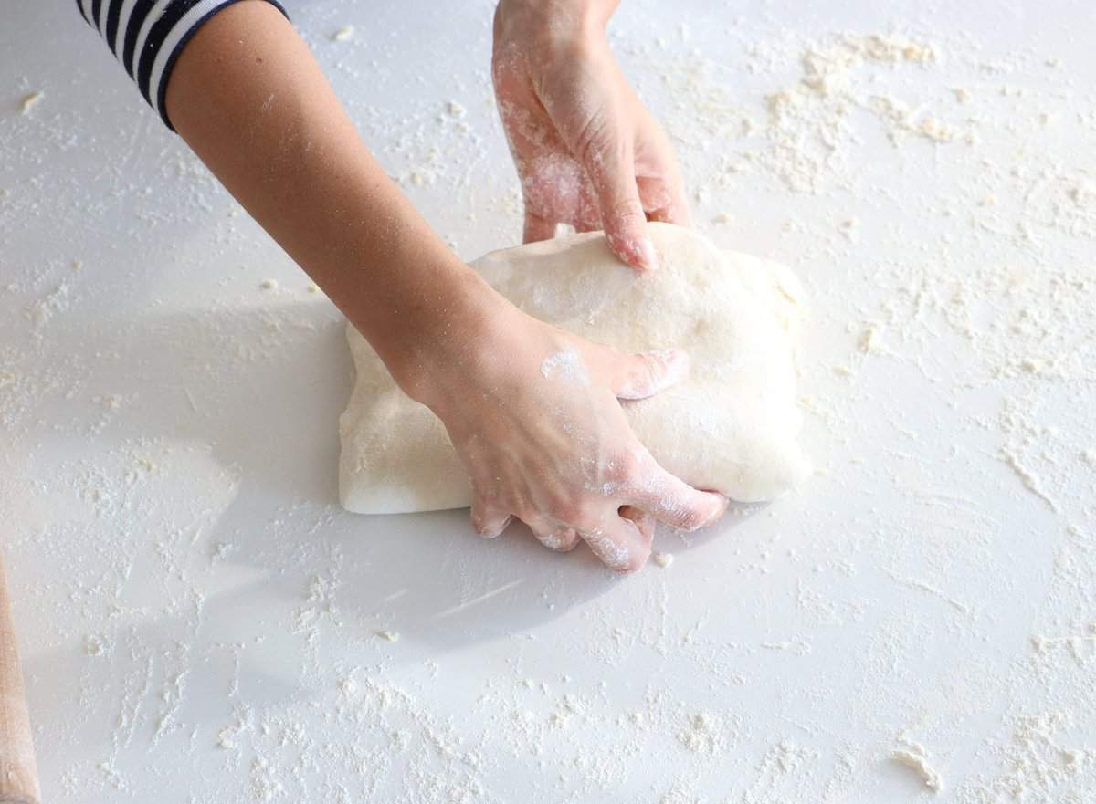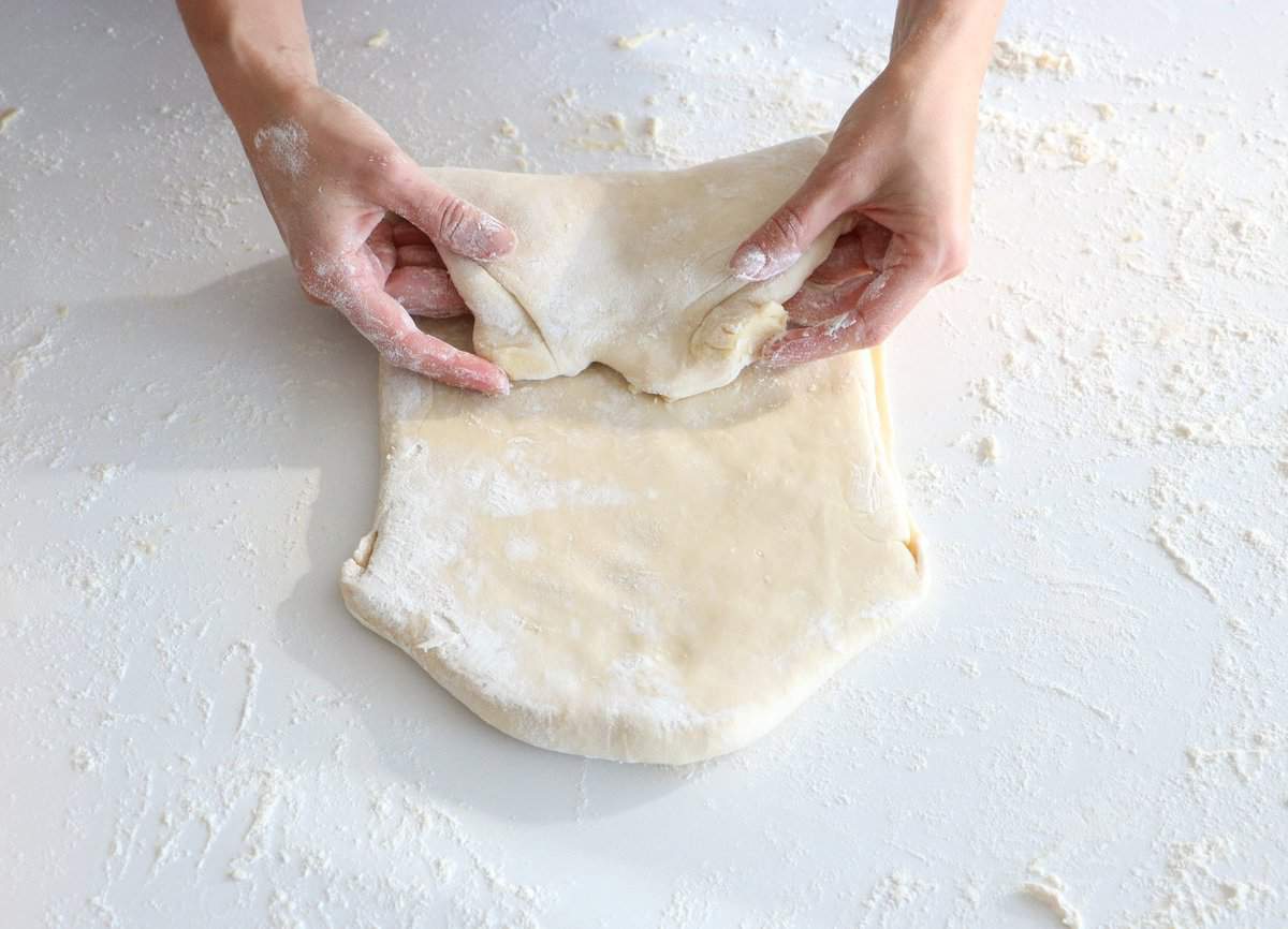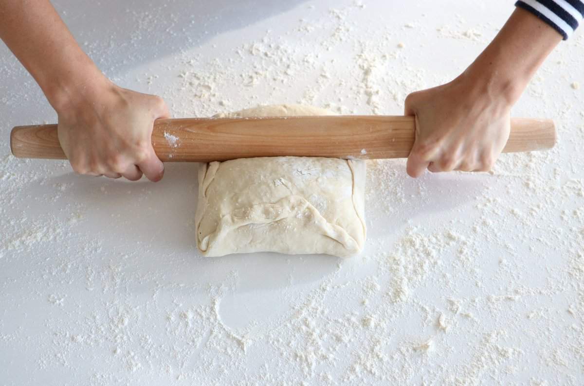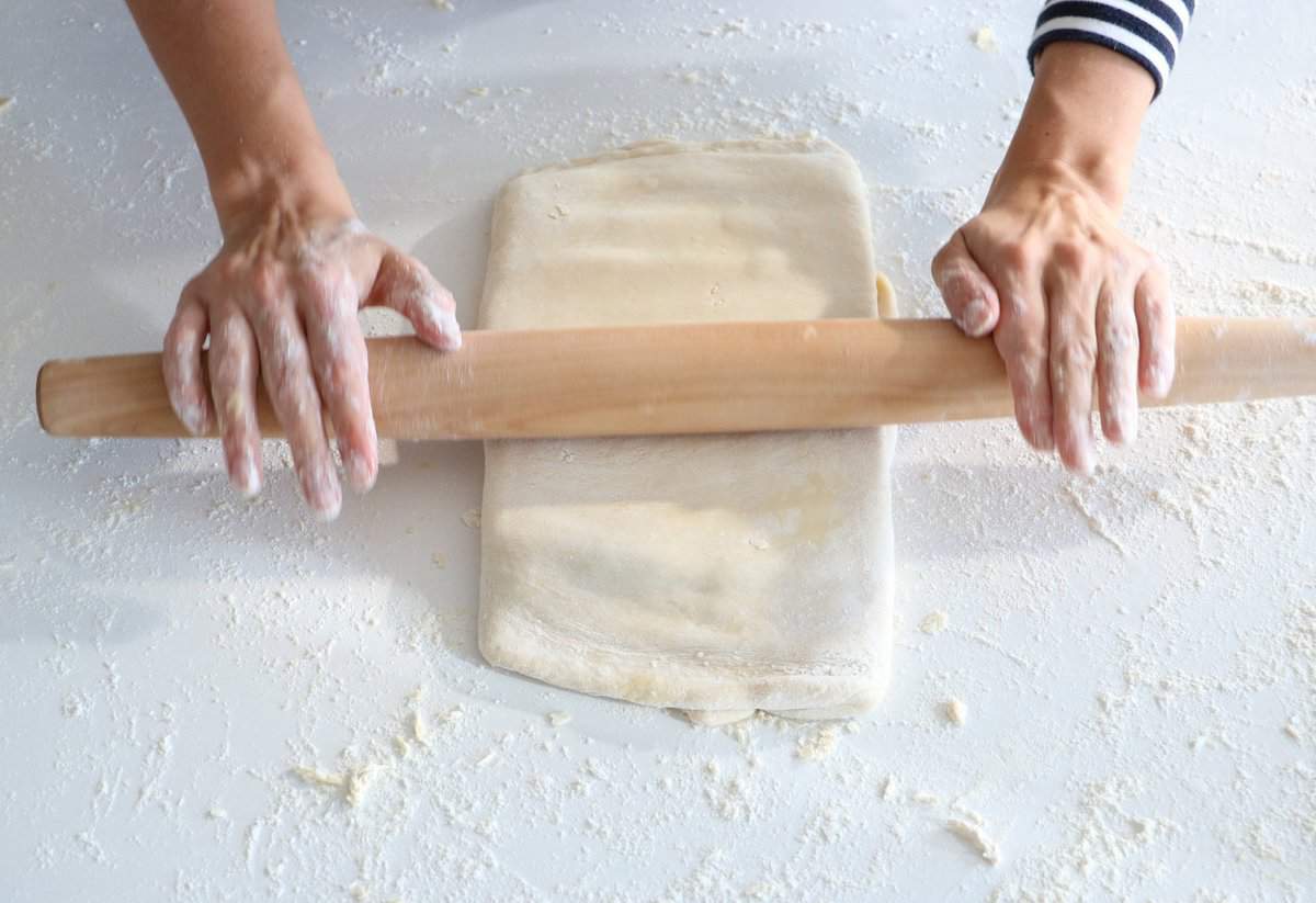 Il convient également d’abaisser la pâte avec délicatesse pour éviter que le beurre ne transperce la pâte à tout moment. Cela endomagerait la pâte et mettrait en péril la réussite de votre entreprise, créant un feuilletage déséquilibré. Le meilleur moyen d’éviter que ce phénomène ne se produise consiste à gentiment tapoter la pâte avec le rouleau à pâtisserie plutôt que de l’étaler. Si par accident le beurre en venait à s’échapper malgré tout, ne vous avouez pas vaincus pour autant, vous pouvez toujours essayer de dissimuler le beurre lors du prochain pliage, en veillant à ce qu’il soit bien au milieu de deux couches de pâte (à éviter autant que possible néanmoins).