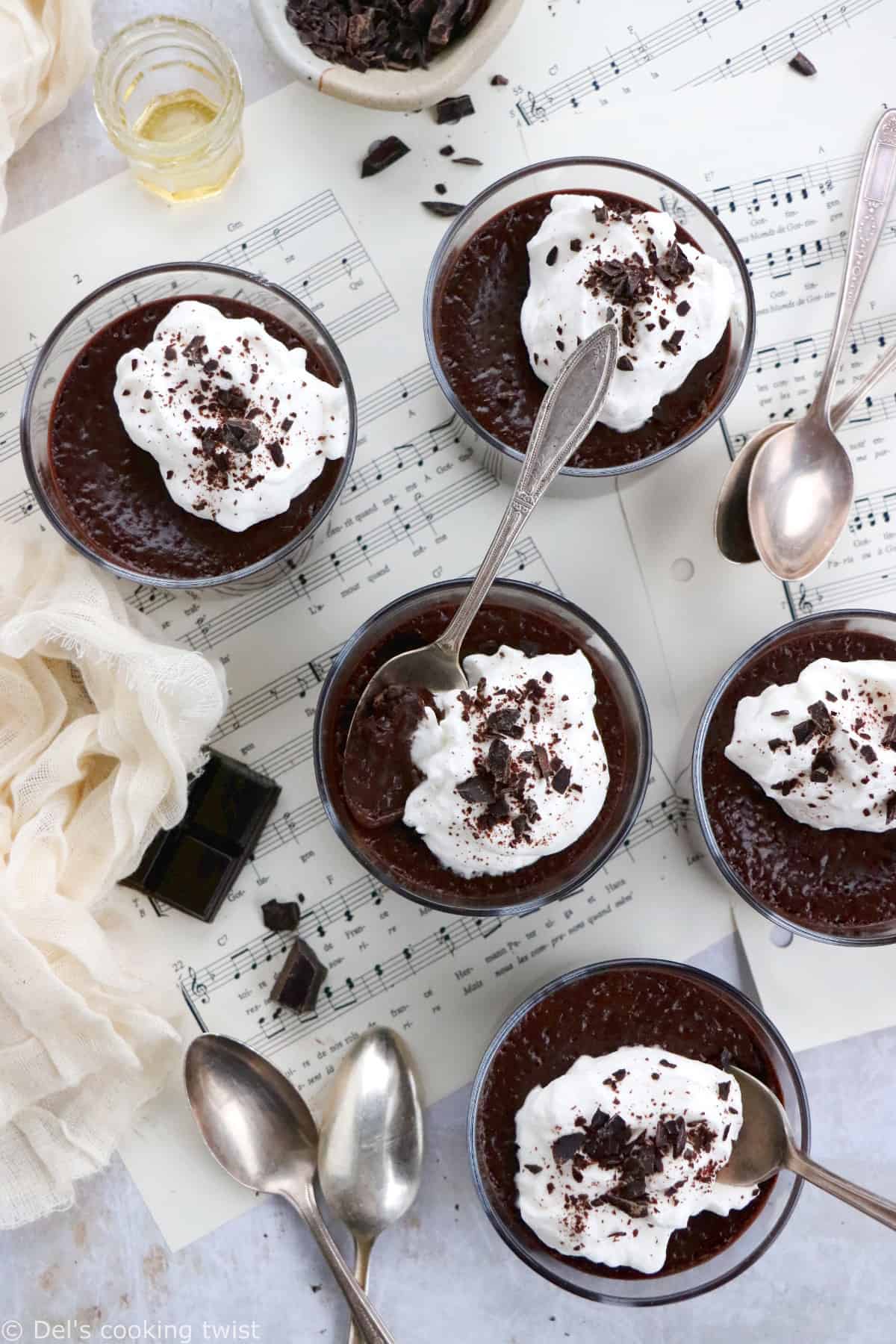 Les petits pots de crème au chocolat à l’ancienne, c’est un dessert de grand-mère très gourmand qui vous replongera en enfance. Réalisés avec seulement 5 ingrédients, ces petits pots sont à a fois riches, crémeux et forts en chocolat.