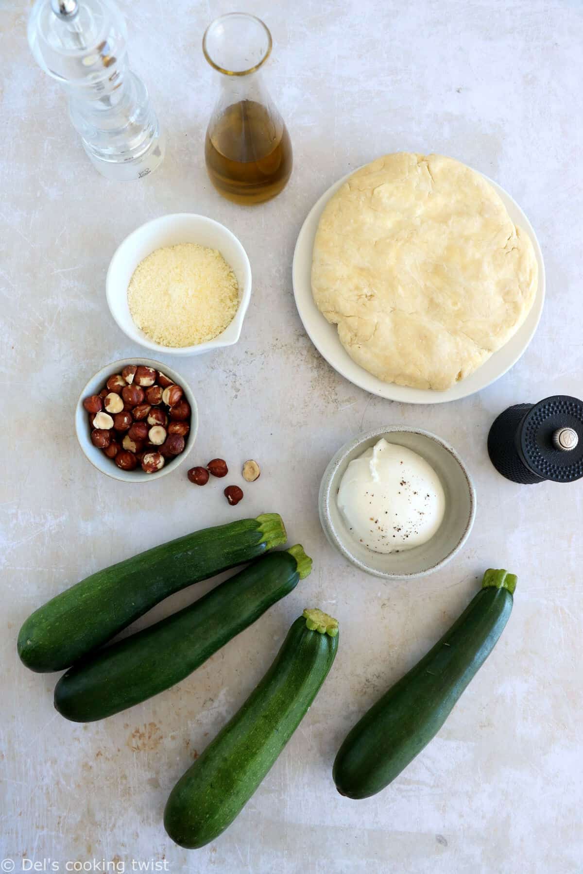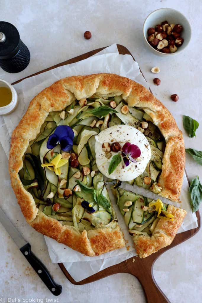 Tarte rustique aux courgettes, burrata et noisettes grillées