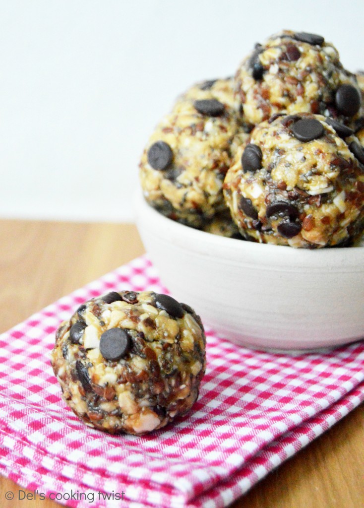 Oui pas de souci, la recette fonctionne aussi parfaitement sans graines de lin. Il est possible d’y ajouter un peu de noix de coco râpée mais pas trop sinon la pâte perd de son humidité et devient alors difficile à façonner en boules.