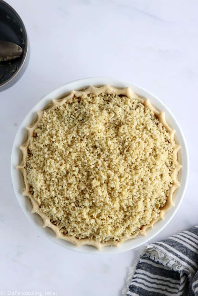 Can I make it without the bottom crust? Yes, you can! Simply pour the filling mixture into a shallow dish, top with the breadcrumb mixture, and bake. To serve, use a large spoon to scoop out the filling.