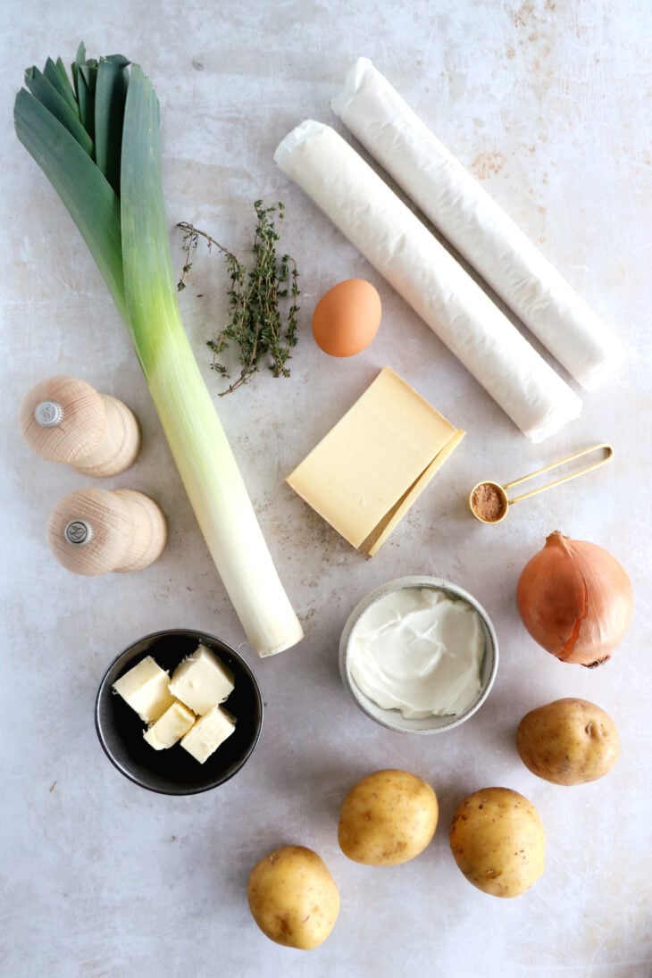 - Onions + leeks. They add subtle sharp flavors to this potato pie.