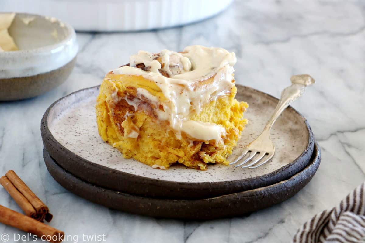 - For the cream cheese icing, add cream cheese, butter, confectioners’ sugar, maple syrup and salt in a medium bowl and beat with an electric mixer until smooth. Spread over the pumpkin rolls, and enjoy!