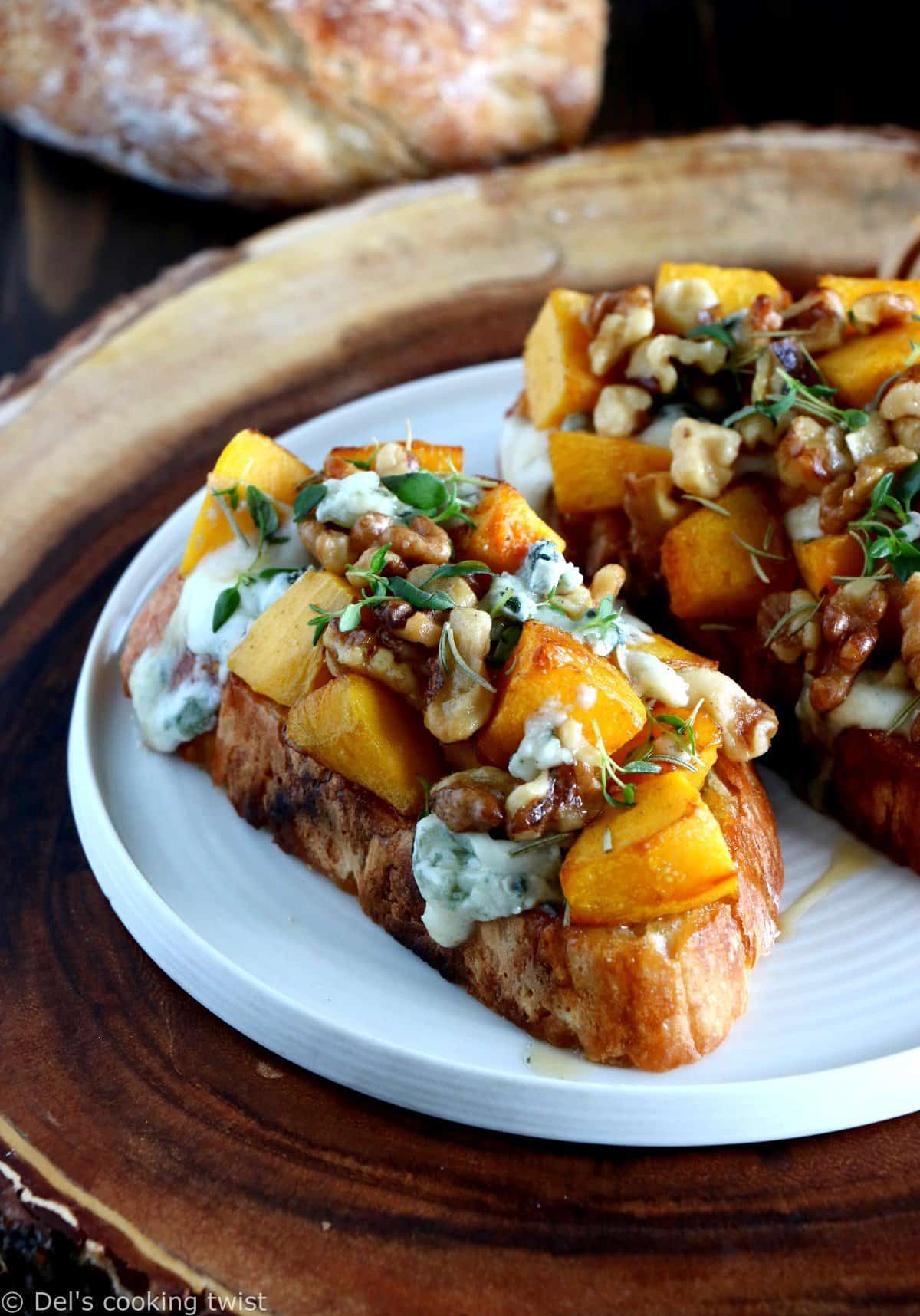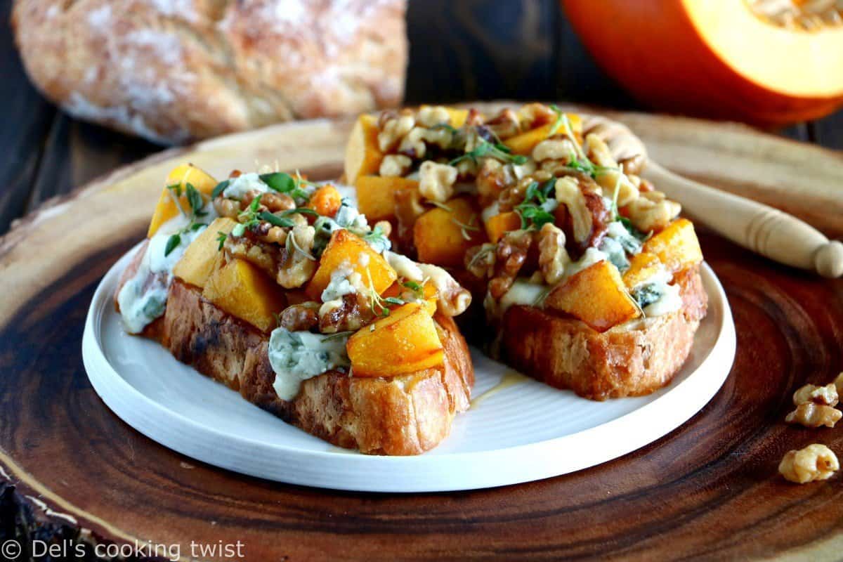 Pumpkin, Walnut and Blue Cheese Bruschetta
