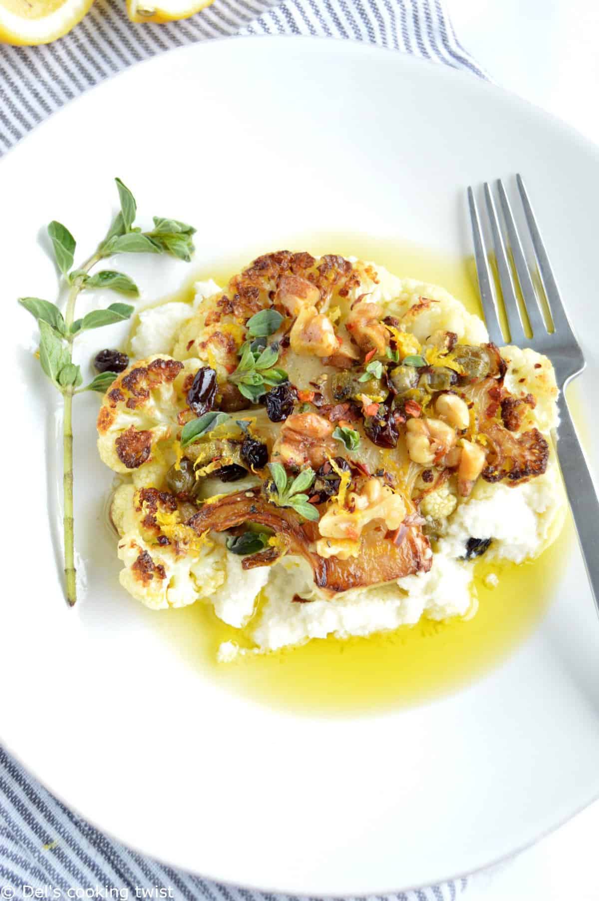 - To serve: spoon about 1/3 cup cauliflower puree onto each plate and place cauliflower steaks on top. Spoon some salsa over and sprinkle with salt and freshly ground pepper. Drizzle some fresh lemon juice, and serve immediately.
