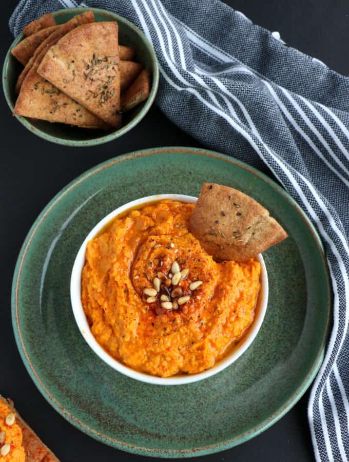 - Replace the chickpeas with navy beans. It’s a wonderful variant to this red pepper hummus!