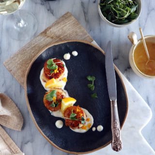 It’s no secret fusion cuisine belongs to one of my favorite cuisines. To me, the addition of sweet and citrusy flavors to any savory dish, especially seafood, is uplifting, refreshing, and energizing. As it turns out, the beauty of any scallop dish comes from our ability to pair them with ingredients that in no way interfere with their original flavor, but simply come in complement to it, in a subtle and delicate association.