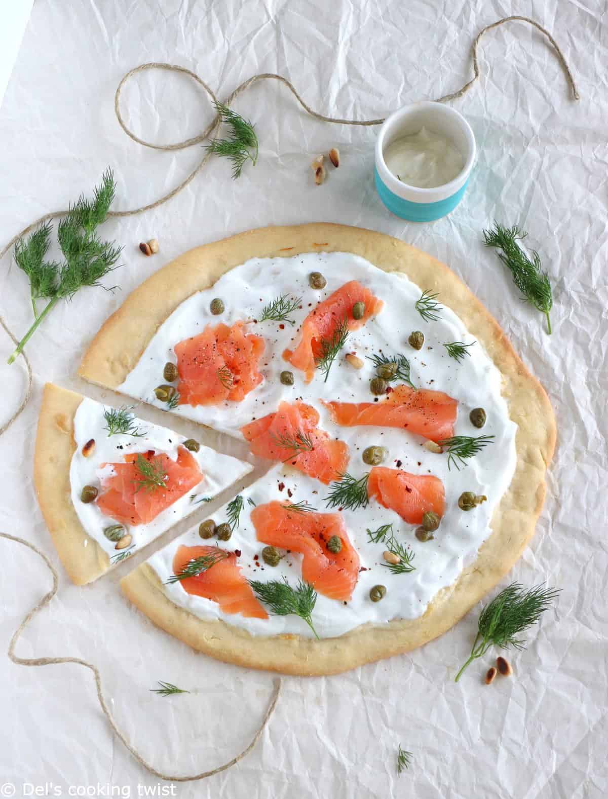 With smoked salmon, capers, sour cream and dill, this easy-to-prepare white pizza has never been so fancy!