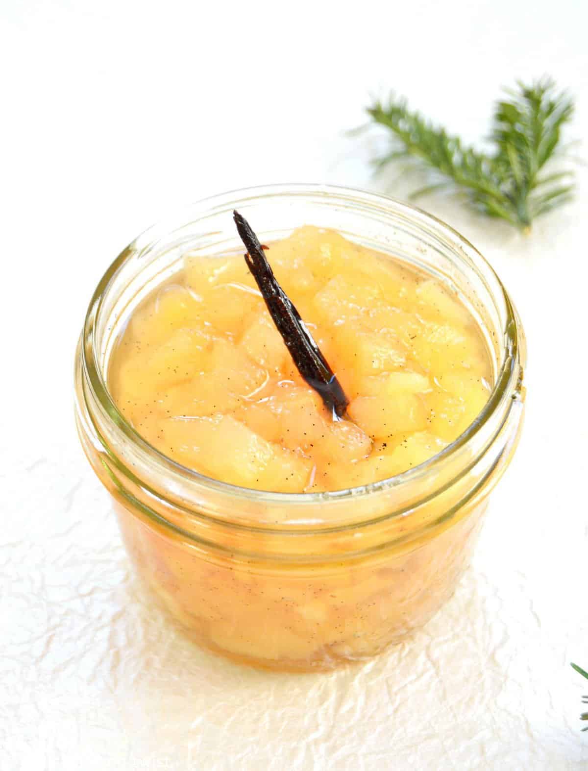 6. Remove the vanilla pod, and pour the confit into glass jars.