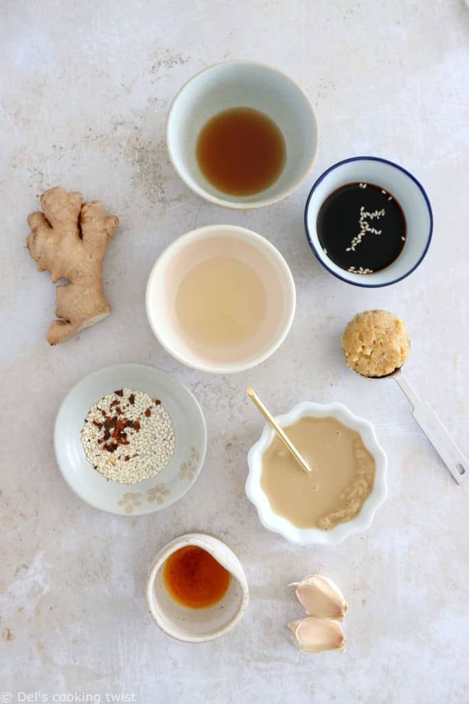 - Miso paste + soy sauce + rice vinegar + sesame oil. They are an essential part of the broth and add some subtle Japanese flavors to the soup.