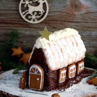 This tiramisu gingerbread house cake is like a fairy-tale. You will love the gingerbread door and windows, the roof made out of ladyfingers or dacquoise, the decadent chocolate walls and the creamy tiramisu inside. Every bite of the house cake is absolutely delicious!