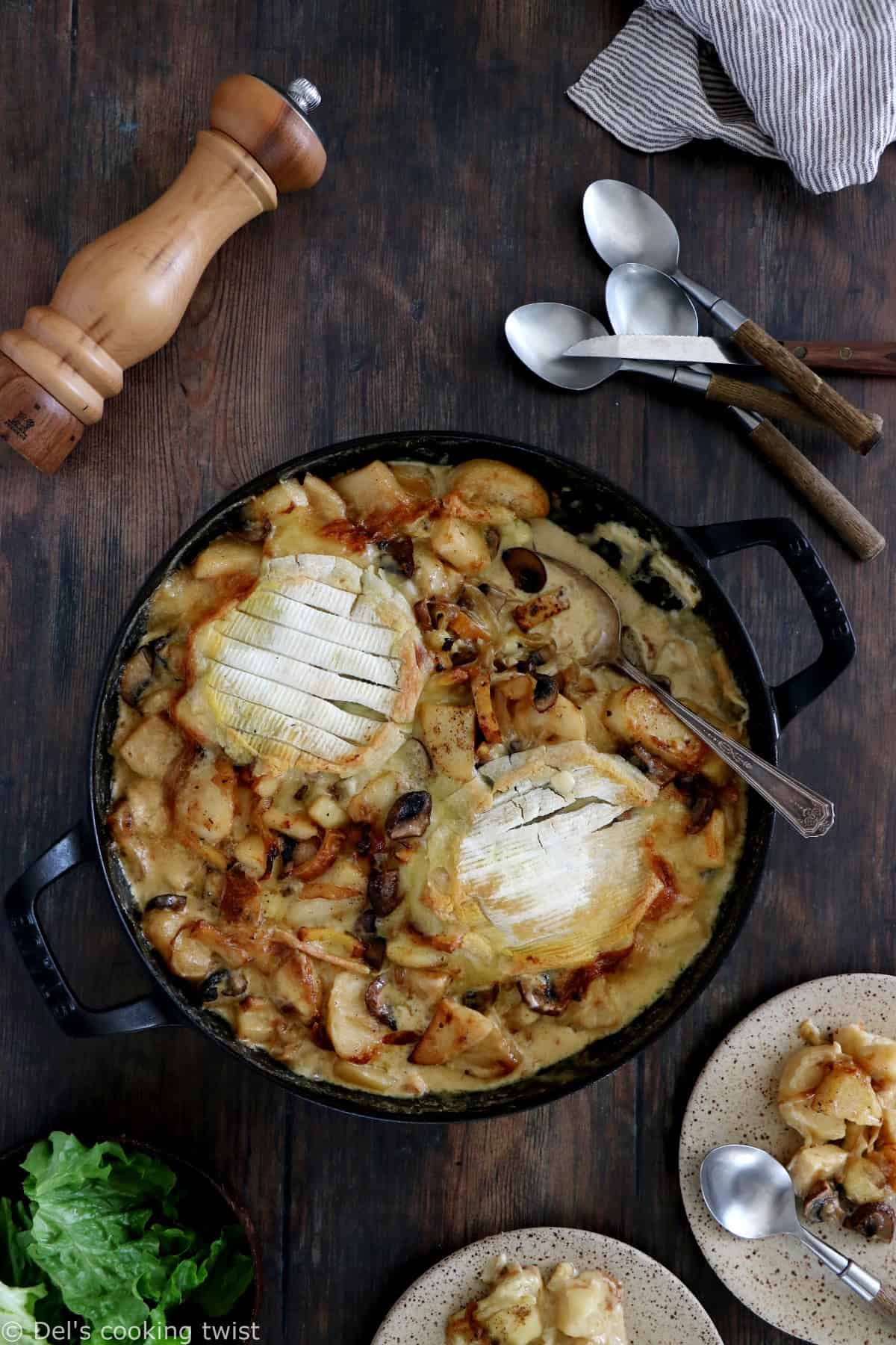 In this vegetarian version, I simply replaced the lardons with smoked tofu and added some cremini mushrooms. Together with the reblochon, they add lots of intense and smoky flavors to the dish, and some texture as well. Whether you’re vegetarian or not, I promise you won’t miss the meat in the recipe!