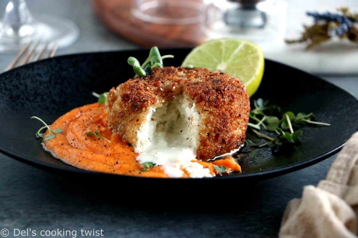 Look no further, I’ve done the research for you and prepared a delicious side to this warm goat cheese. It consists in a basic carrot puree that I enhanced with just a splash of freshly squeezed oranges, adding some very refreshing flavors to the dish.